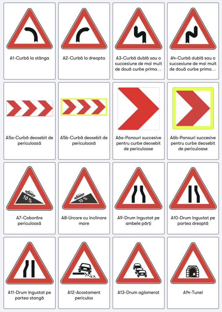 Natura pericolului este data de simbolul indicatorului, completat, dupa caz, de un panou aditional instalat sub indicator.